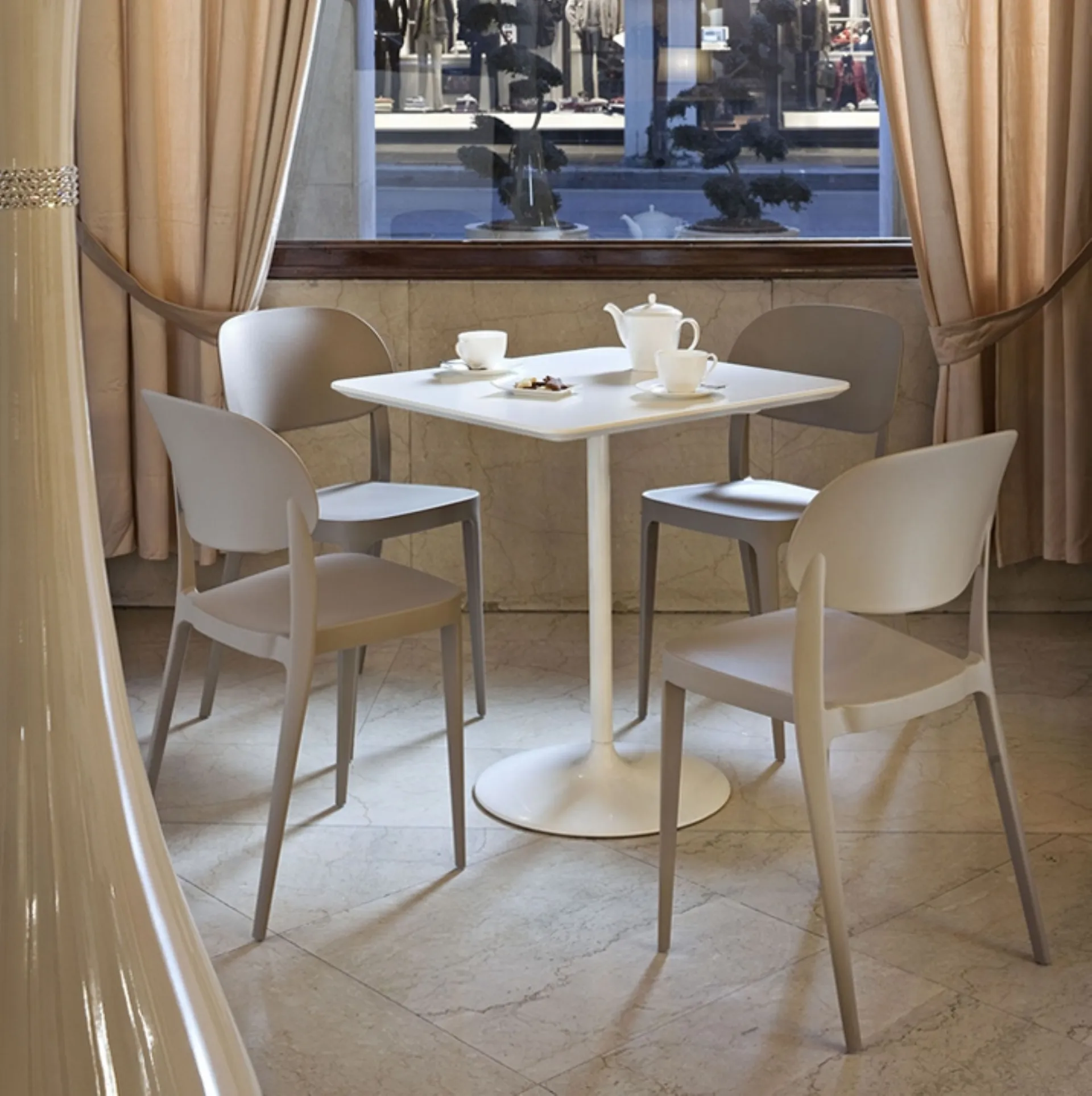 Oltre a rispondere a una funzione imprescindibile, questi pezzi di arredo possono enfatizzare un interno anche impersonale e privo di elementi accessori. Nel nostro punto vendita proponiamo esclusivi mobili e oggetti accessori, tra cui troverai certamente la soluzione che fa al caso tuo. Le sedute moderne, sia in legno che imbottite, sono arredi complessi, definiti da una gamma quasi infinita di tonalità, linee e pattern. Tra i migliori brand disponibili nel nostro negozio di Arredamento Casa troverai le Sedie impilabili da cucina più esclusive sul mercato. Una sedia in plastica come quella qui visibile arreda un soggiorno o una cucina di alto contenuto estetico, ultimando gli spazi valorizzandoli appieno. Contattaci e scopri di più sul modello di Sedia in plastica Agra di Elementi presente in foto.